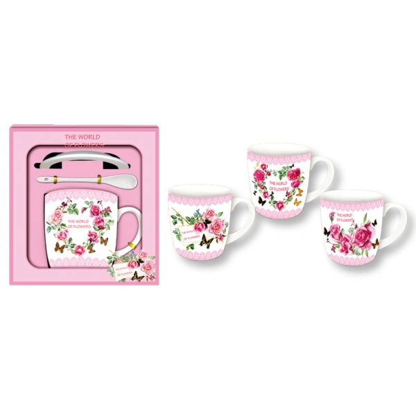 Σετ δώρου: Κούπα με πιατάκι και κουταλάκι, 4 σχέδια.