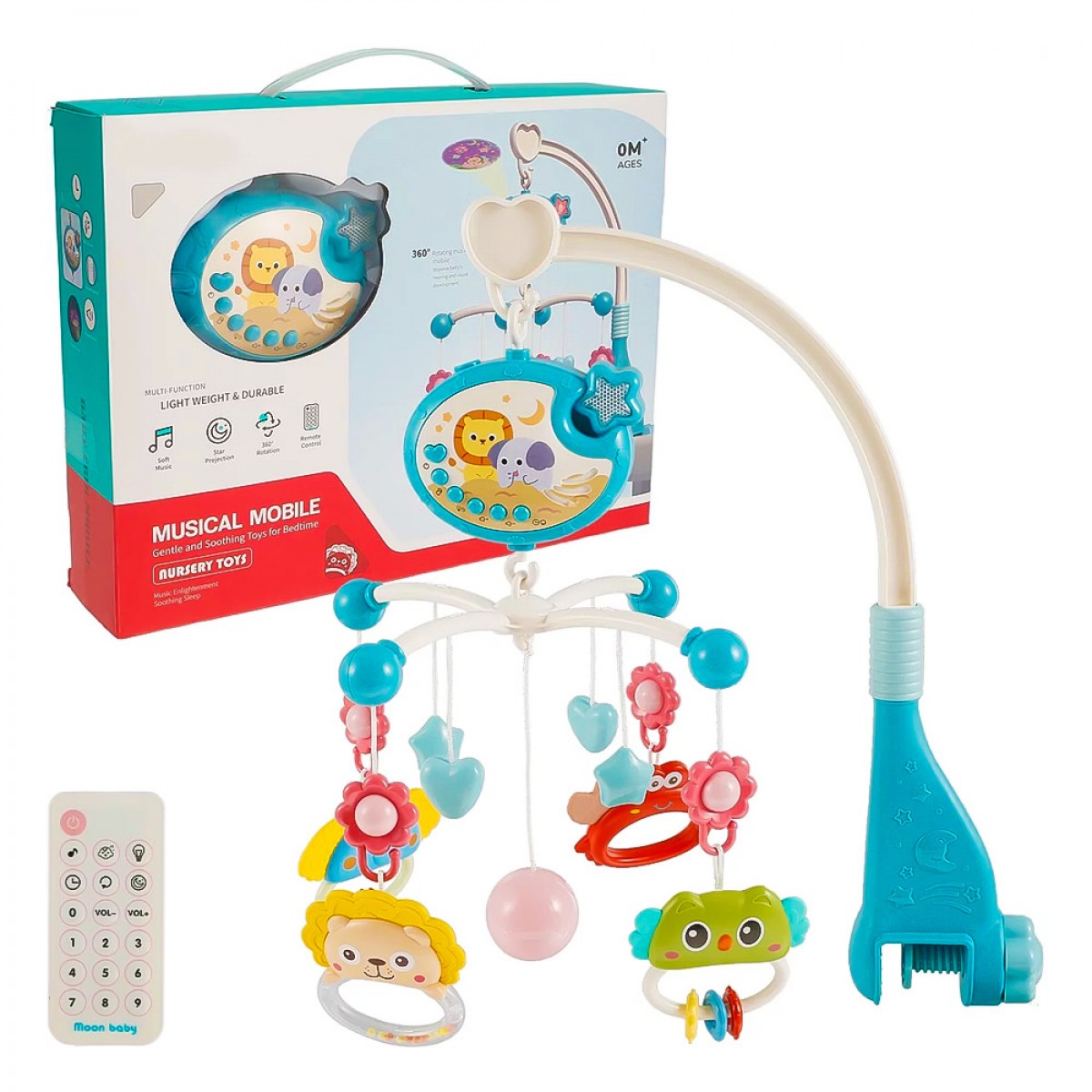 Τα περιστρεφόμενα πολύχρωμα ζώα και τα σχήματα που κρέμονται στο καρουζέλ τραβούν την προσοχή του μικρού παιδιού, το οποίο θα τα παρατηρήσει με ανυπομονησία και θα προσπαθήσει ακόμη και να τα πιάσει. Η μονάδα ήχου παίζει διάφορες μελωδίες που θα ηρεμήσουν και θα κοιμίσουν το παιδί, ενώ μπορείτε επίσης να χρησιμοποιήσετε τη λειτουργία εμφάνισης μιας πολύχρωμης εικόνας στην οροφή.