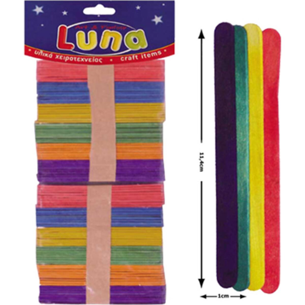 Ξυλάκια χρωματιστά Luna 114mm Συσκευασία 100 τεμαχίων. Για να κάνετε διαφορές δημιουργικές κατασκευές.