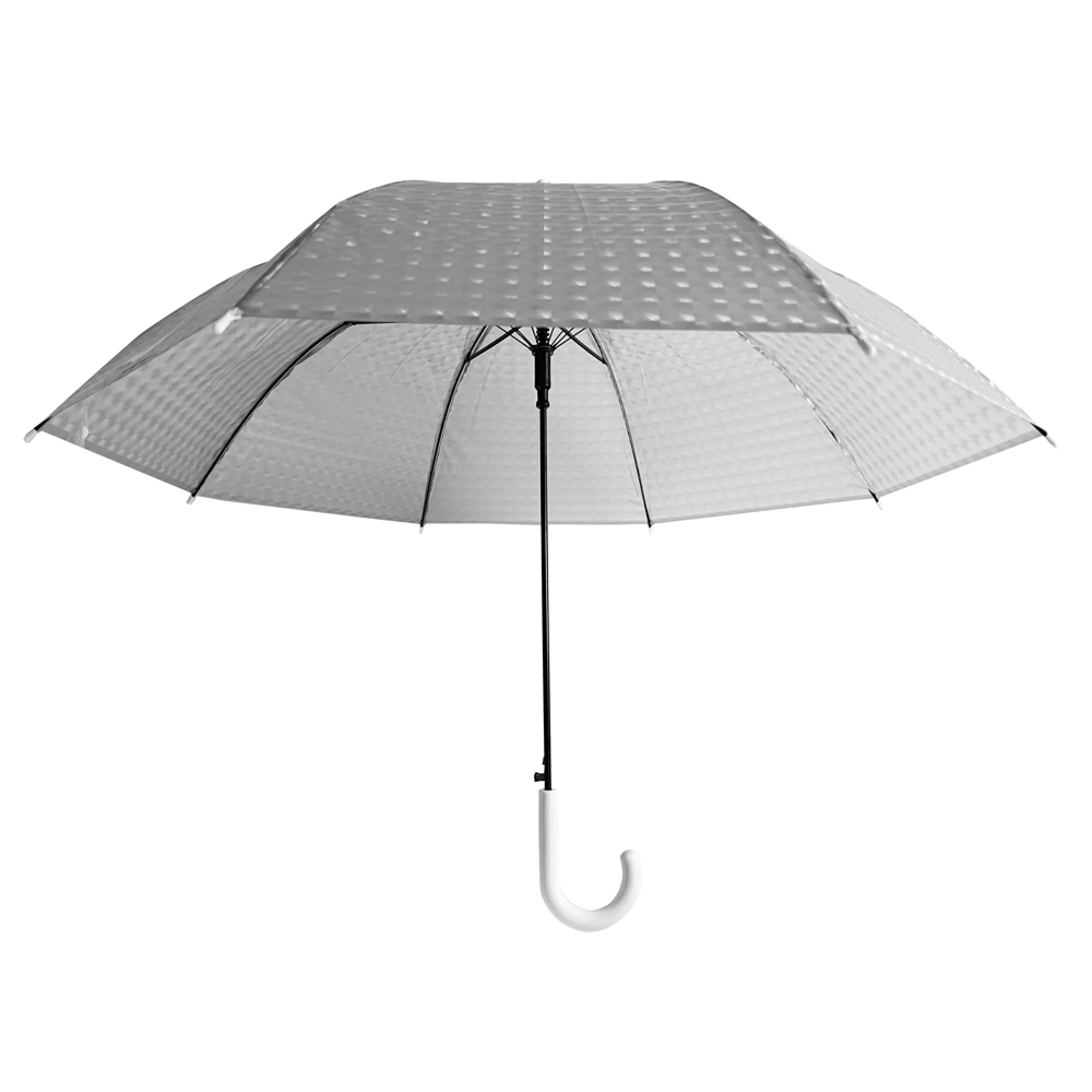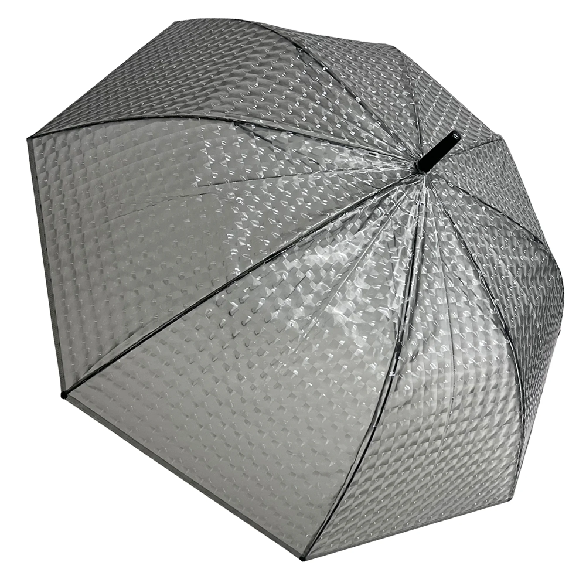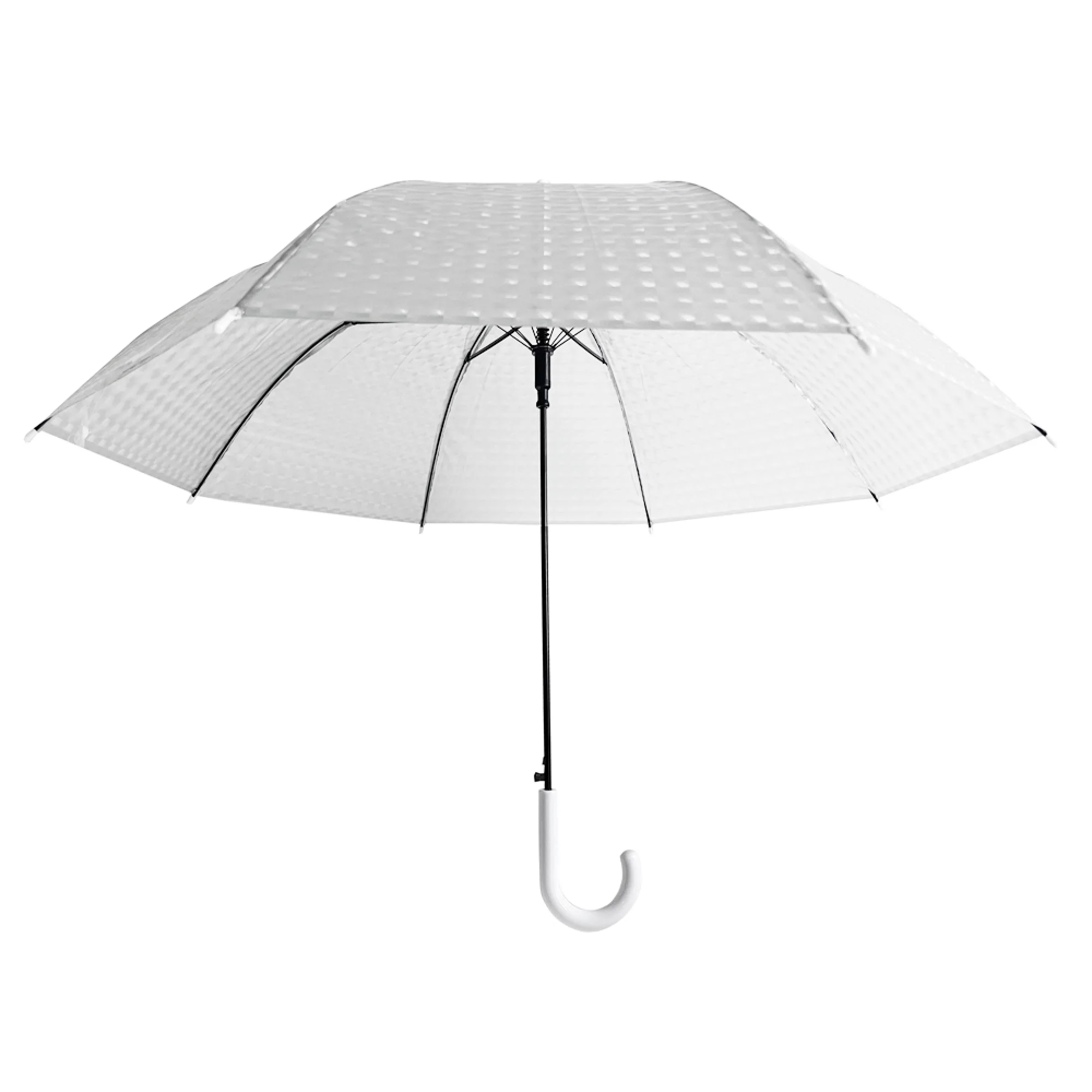 Ομπρέλα γυναικεία μονοκόμματη με αυτόματο άνοιγμα μεταλλικό μαύρο σκελετό 10mm, 8 ακτίνες μήκους 58cm, αντιανεμική , διάμετρος ανοιχτής ομπρέλας ≈ 116cm, POE διάφανη μονόχρωμη και πλαστική λαβή μαγκούρα. Διατίθεται σε 4 χρώματα. TREND