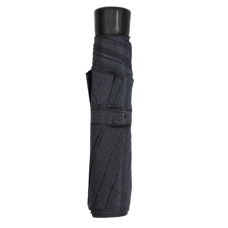 Ομπρέλα unisex 3σπαστη με χειροκίνητο άνοιγμα, μεταλλικό μαύρο σκελετό, 8 ακτίνες μήκους 53cm, διάμετρος ανοιχτής ομπρέλας ≈ 103cm ύφασμα 100% polyester γκρι καρώ και μαύρη λαβή πλαστική. Διατίθεται σε 12 σχέδια. TREND