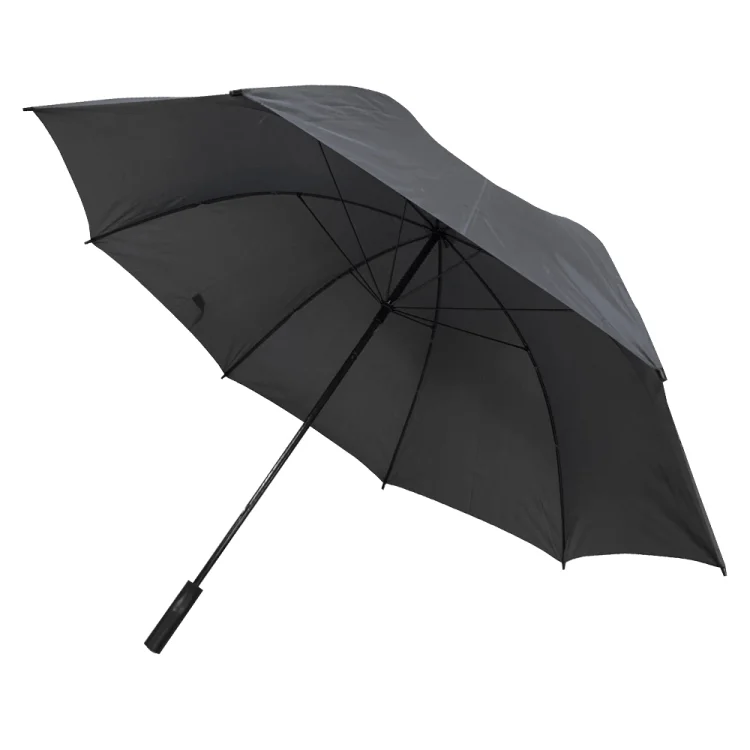Ομπρέλα golf μονοκόμματη με χειροκίνητο άνοιγμα, fiberglass σκελετό 14mm, 8 ακτίνες μήκους 74cm fiberglass, διάμετρος ανοιχτής ομπρέλας ≈ 130cm, ύφασμα 100% polyester pongee μαύρο και λαβή. TREND
