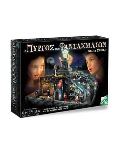 Η συσκευασία περιέχει: 1 φάντασμα που φωσφορίζει στο σκοτάδι, 1 μεταλλrκή σφαίρα, 8 πιόνια, 8 βάσεις γrα τα πιόνια που φωσφορίζουν στο σκοτάδι, 1 ζάρι, 1 διαχωριστικός οδηγός σφαίρας, 1 πλαίσrο οροφής, 1 οροφή πύργου (2 κομμάτια), 1 σκάλα, 1 καρτέλα βιβλιοθήκης, 1 χωνί βιβλιοθήκης, 1 σωλήνας βιβλrοθήκης, 1 καρτέλα διαδρόμου, 1 κάρτα πίνακας/βιβλιοθήκη, 1 εξώστης, 1 μπαλκόνι, 1 τσεκούρι, 1 στήριγμα τσεκουριού, 1 επάνω όροφος, 1 πύργος, 1 κοντό τείχος, 1 μακρύ τείχος, 1 ταμπλό παιχνιδιού/κουτί, 1 φυλλάδιο οδηγιών.