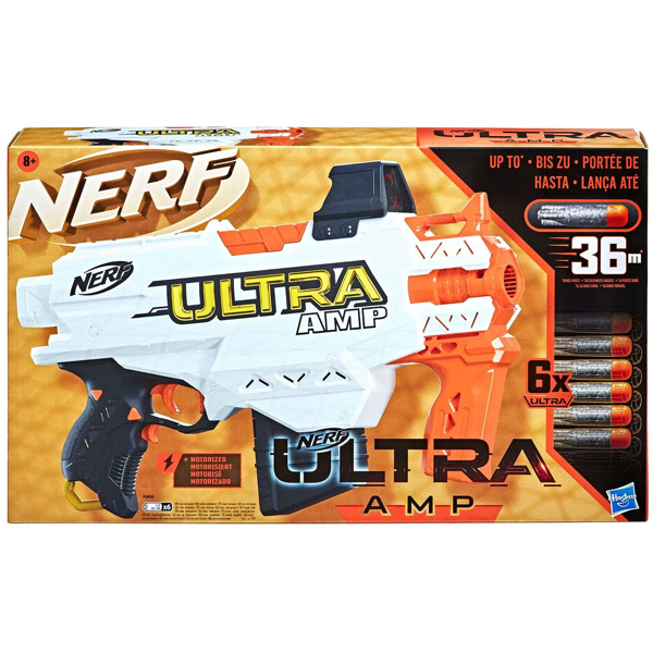 Το Nerf Ultra AMP Motorized Blaster, με ενσωματωμένο σκόπευτρο, περιλαμβάνει αυτόματη εκτόξευση βελών, για μεγαλύτερη ταχύτητα! Τα βελάκια Nerf Ultra διαθέτουν καινοτόμο άκρο πτήσης, τεχνολογία Aerofin και ελαφρύ αφρό Nerf Ultra!