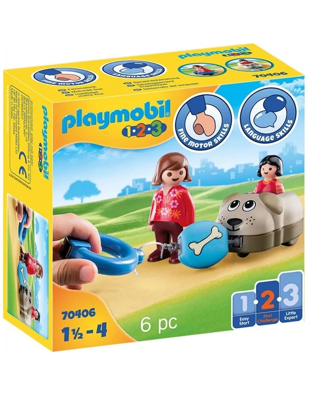 Mπορείτε να πάτε το σκυλάκι βόλτα με το λουρί ή να αφήσετε τη φιγούρα να τον κρατήσει. Δώστε στον σκύλο το κόκκαλό του ή πείτε του να σας φέρει τις παντόφλες. Συνδυάζεται με το Τρενάκι με βαγόνια-ζωάκια (κωδ. 70405).