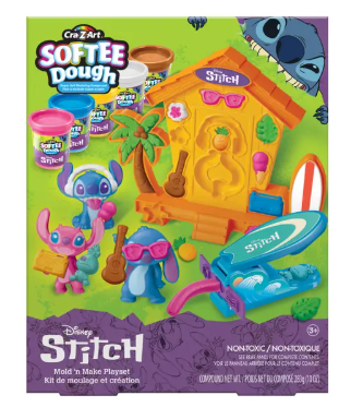 Με τα 3 καλούπια που περιλαμβάνονται, τα παιδιά μπορούν να φτιάξουν χαριτωμένες φιγούρες του Stitch και να διασκεδάσουν χρησιμοποιώντας τον ειδικό εξωθητήρα πλαστελίνης για να δημιουργήσουν πολύχρωμες σανίδες σερφ.